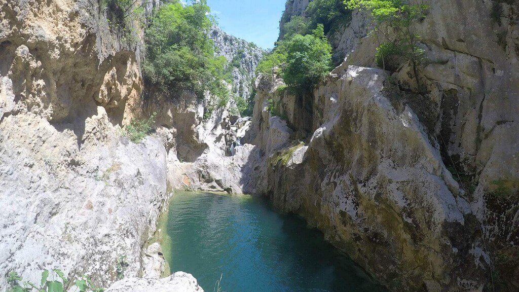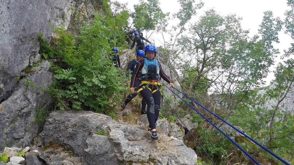 1Canyoning findet auf dem Fluss Cetina statt, der 105 km lang ist und sich vom Ort Vrlika bis zur Stadt Omiš durchzieht und von dort aus in die Adria mündet. Canyoning beginnt im Ort Zadvarje, wo der Fluss Cetina einen erstaunlichen Wasserfall mit faszinierenden Steinskulpturen und Steinklippen bildet, die sich in ihrer Gesamtheit über uns erstrecken.