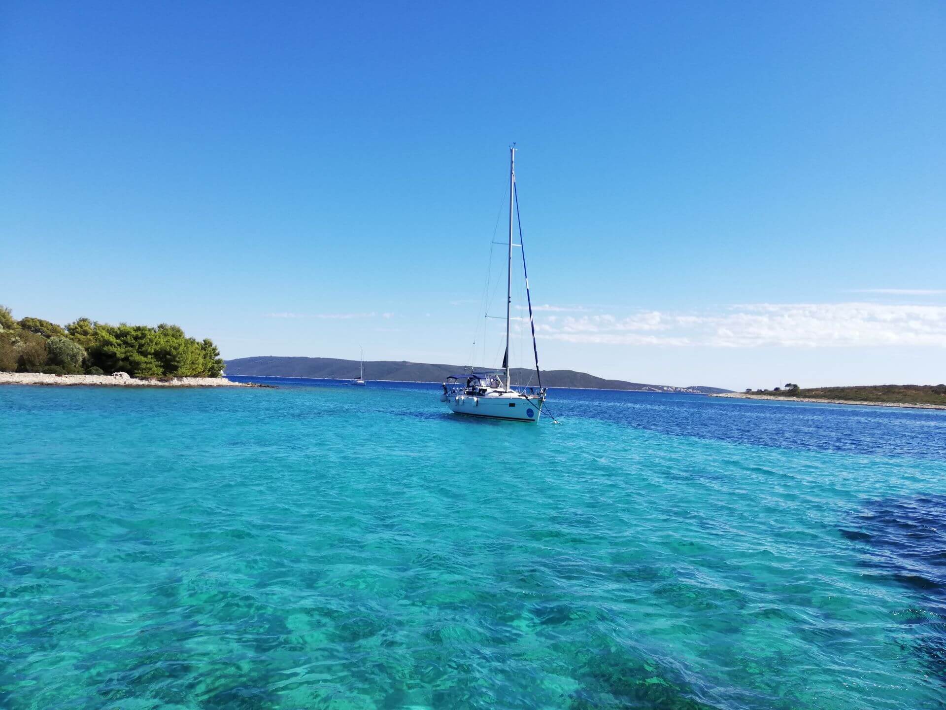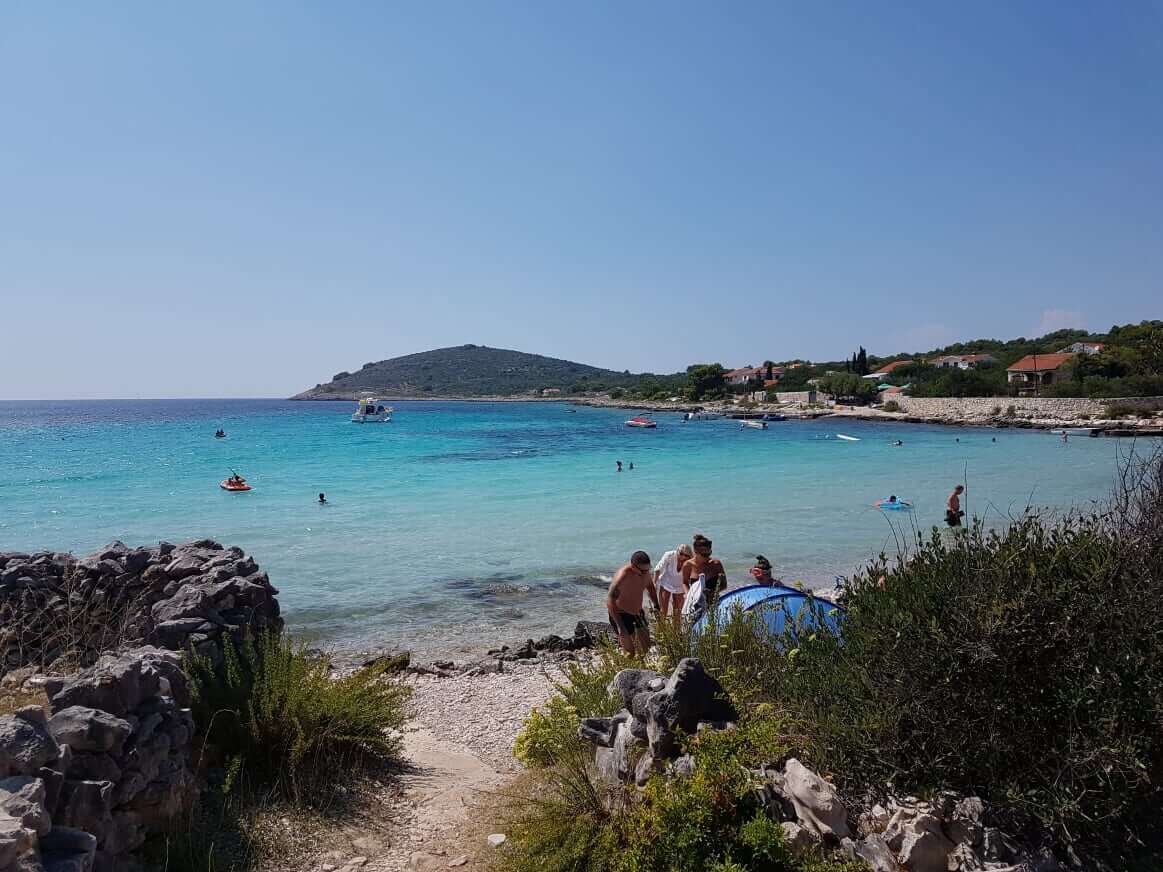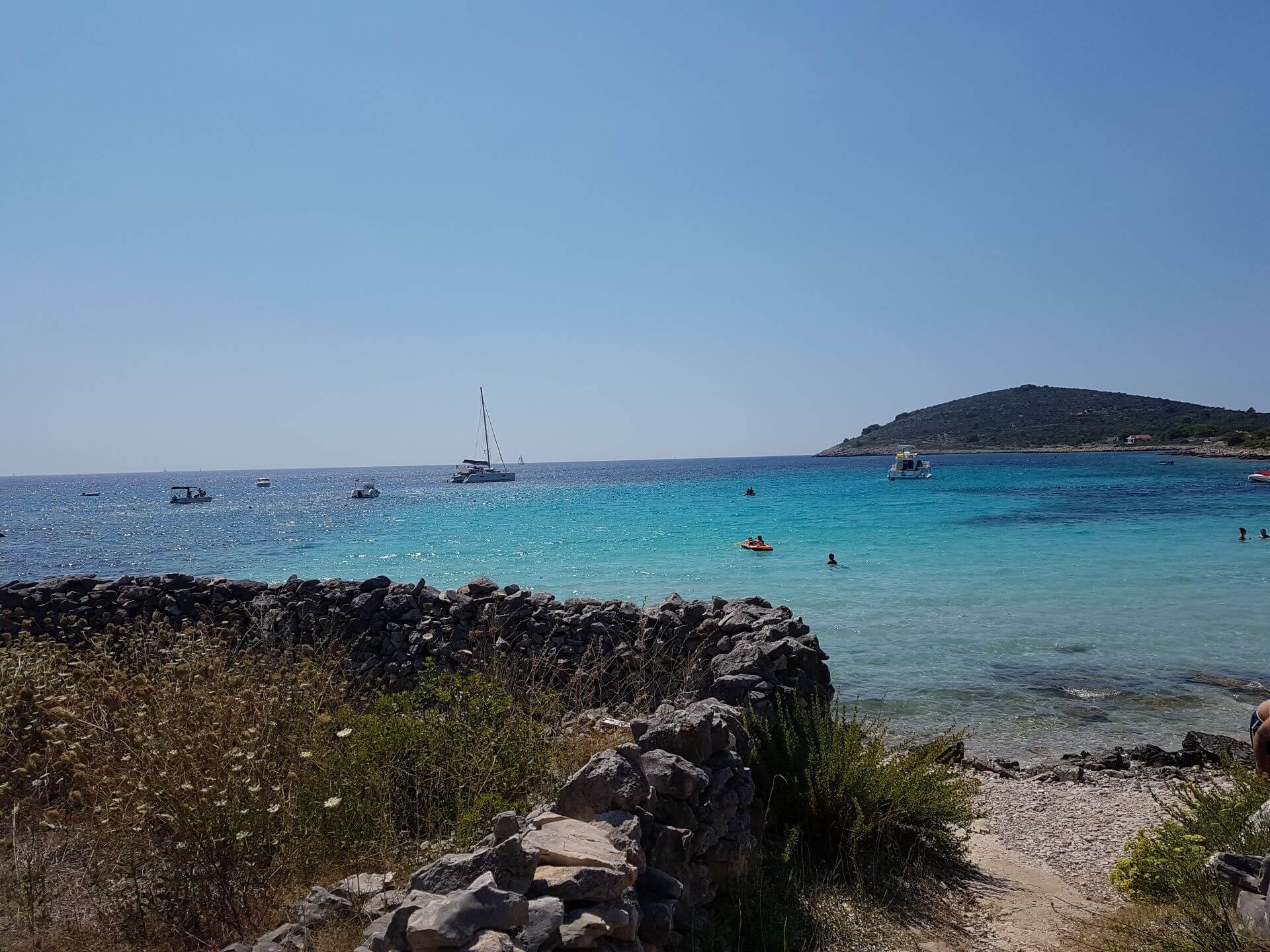 Our first stop is Vela Rina, a magical bay with the most beautiful sandy beach on the island.